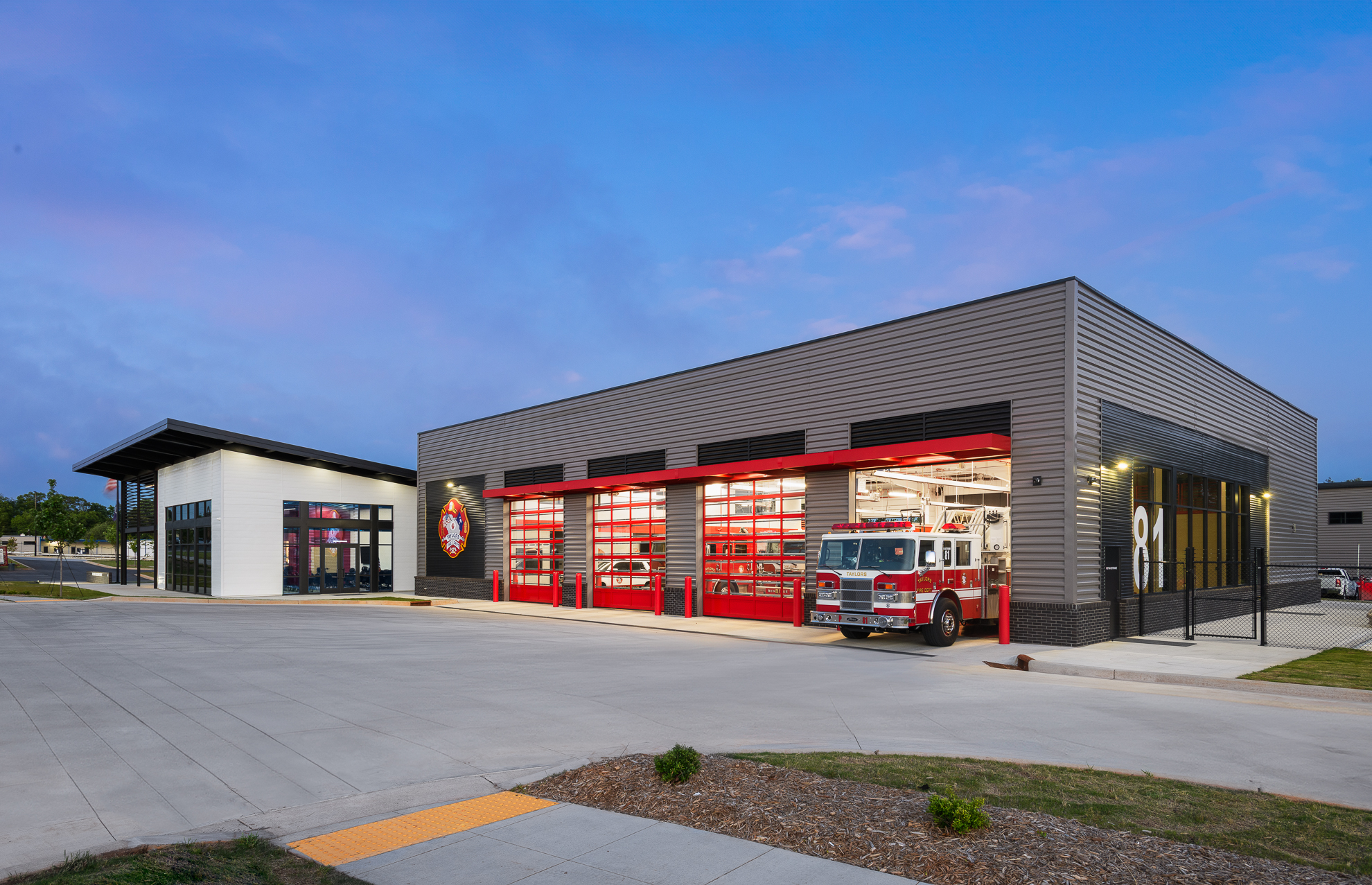 The modern design, strategic siting, and expanded program make the new Taylors Fire Headquarters a state-of-the-art center of emergency response and a proud civic icon for the Taylors community.