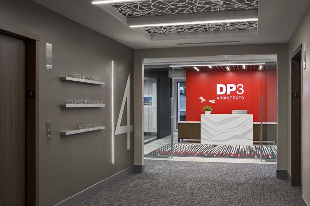 The Wells Fargo Center lobby and common spaces had recently been renovated with leading-edge design by the our firm, making the building a perfect home for which to move our equally leading-edge team. Collaboration and morale between team members is at an all-time high and new energy and enthusiasm envelops the space. This high level of collaboration promotes a level of innovation that DP3 Architects, and our clients, haven’t seen before. Our clients are seeing the benefits through increased idea-generation and responsive, solutions-based services. The end result of the office design is a collaborative, innovative, and functional space that meets the goals of our firm and the needs of each and every team member who steps through those expansive glass-front doors.